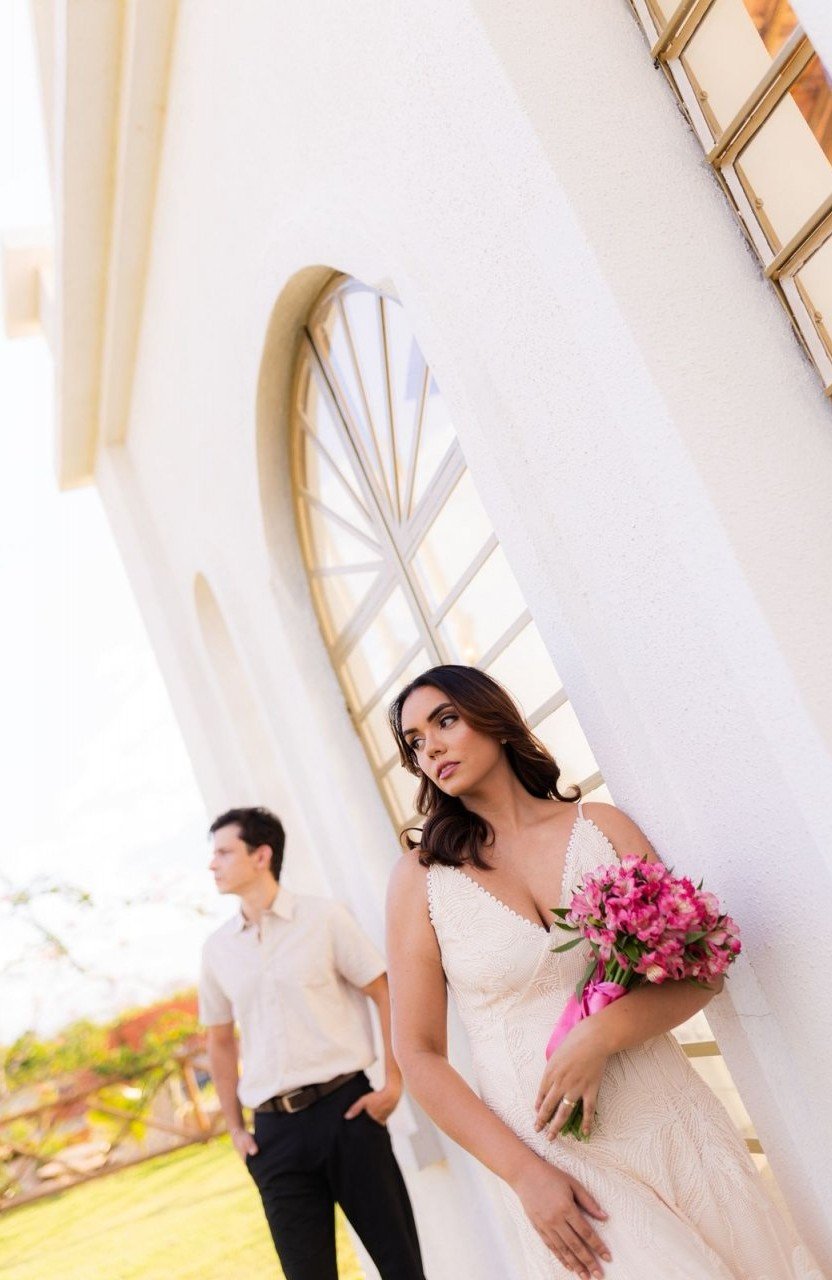 Atenção especial: o branco é uma cor reservada exclusivamente para a noiva nesse dia tão único. Por isso, pedimos com carinho que evitem vestidos brancos ou com fundo branco, mesmo que tenham estampas coloridas, além de tons muito claros que possam ser confundidos com o branco, para manter esse momento especial só dela. 💕